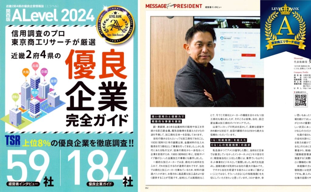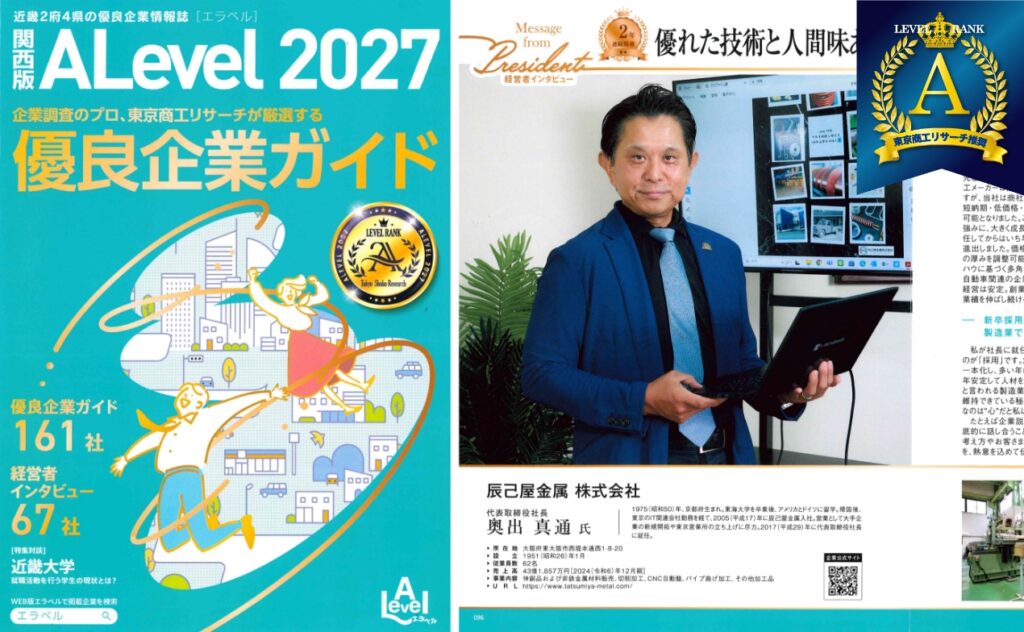 • 優良企業情報誌「ALevel」2027年号で、優良企業に選ばれ、経営者インタビューを受けました。